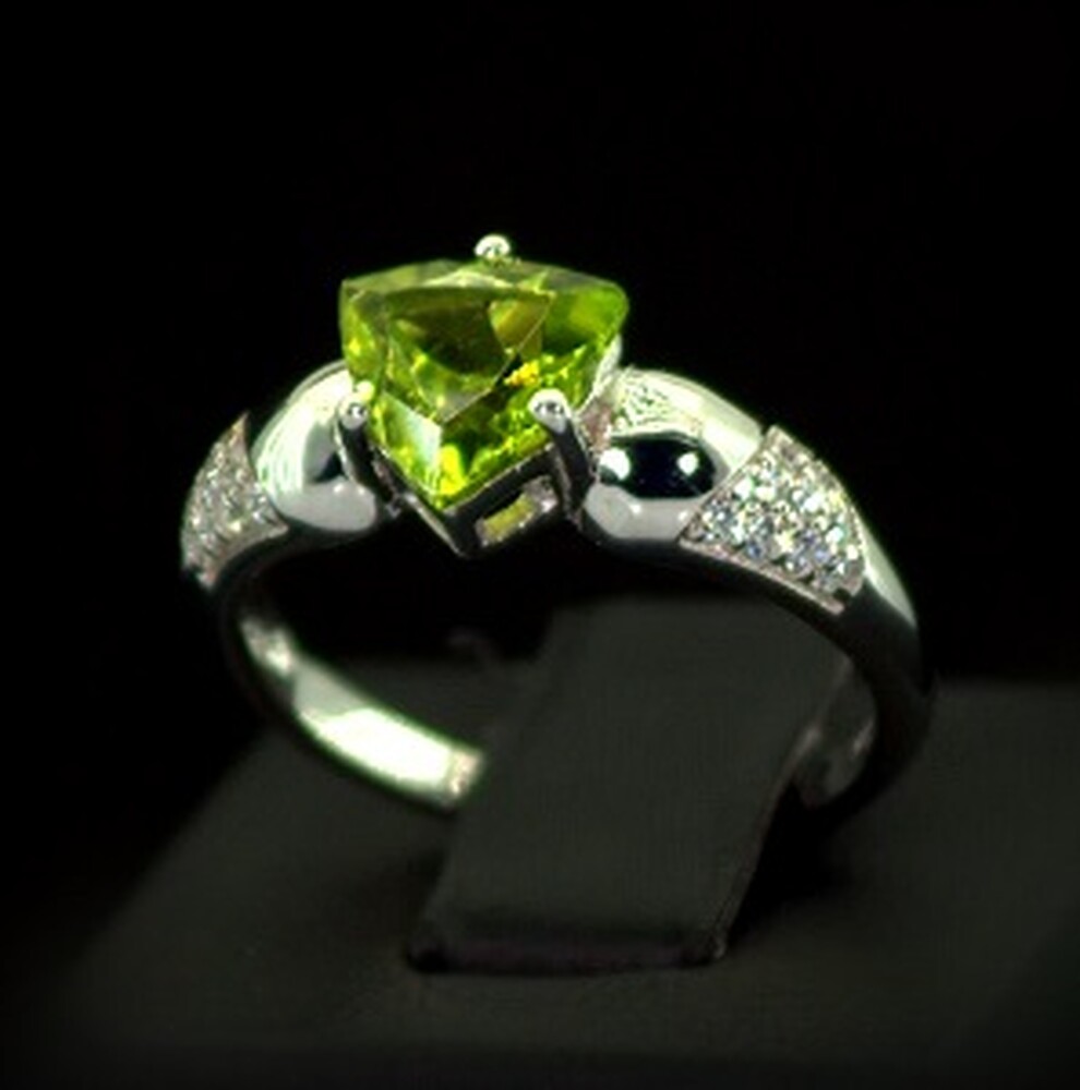 Серебряное кольцо 925 пробы 3,43 г с египетским Хризолітом и цирконами 2,11 карат