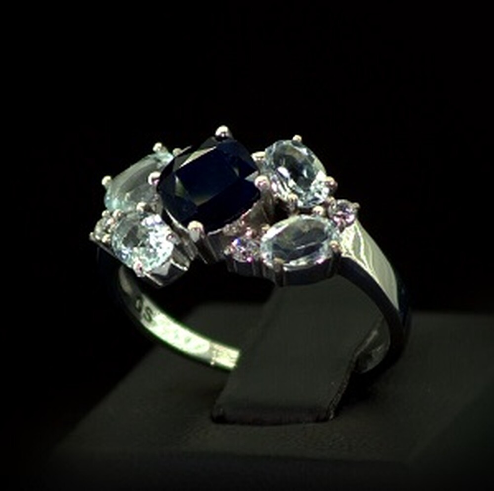 Серебряное кольцо 925 пробы 4,28 г с в'єтнамським Сапфіром, бразильскими топазами та фианитами 4,85 карат