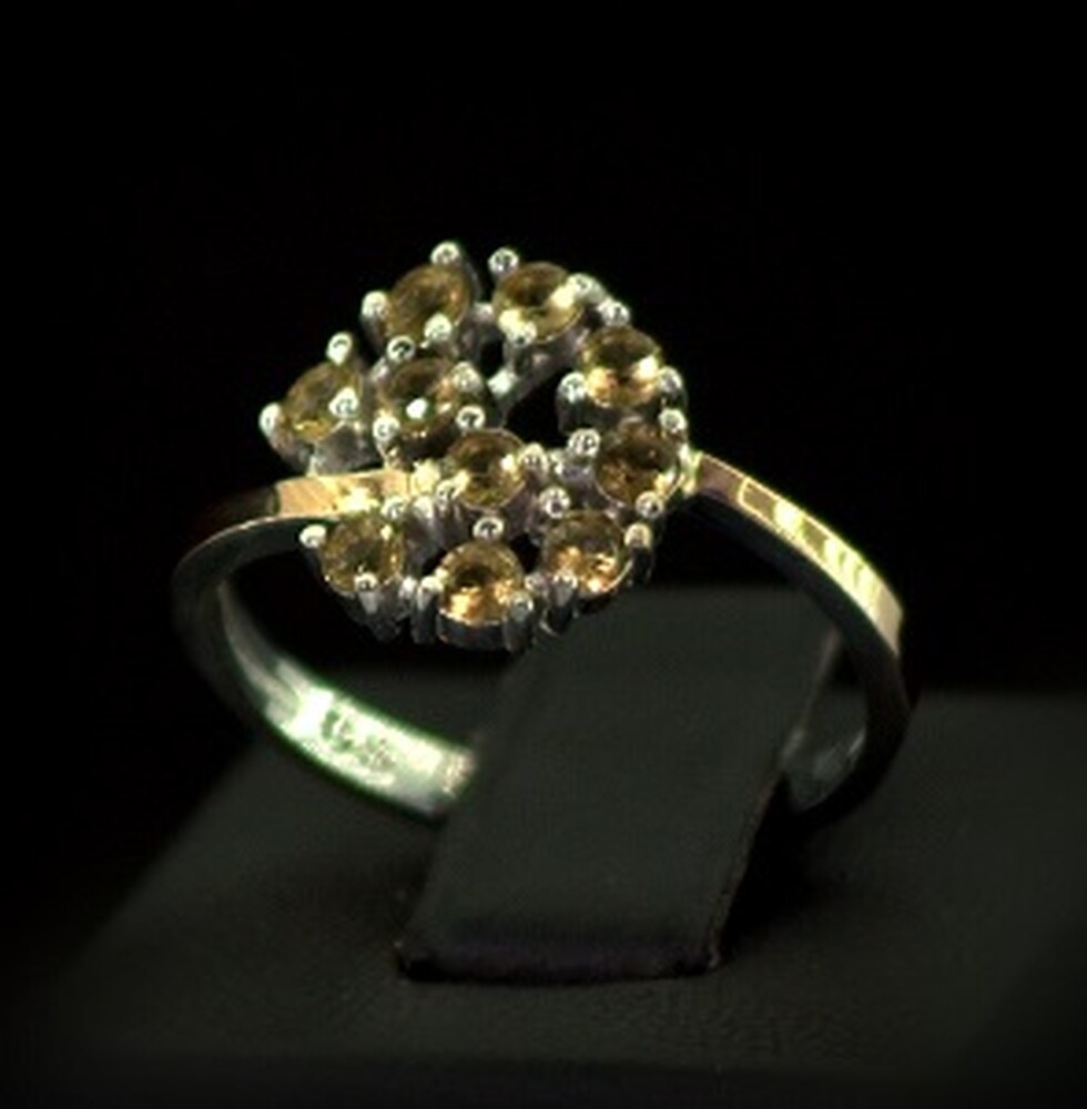 Серебряное кольцо 925 пробы с позолотой 375 пробы 2,45 г с коньячними Фианитами 1,25 карат