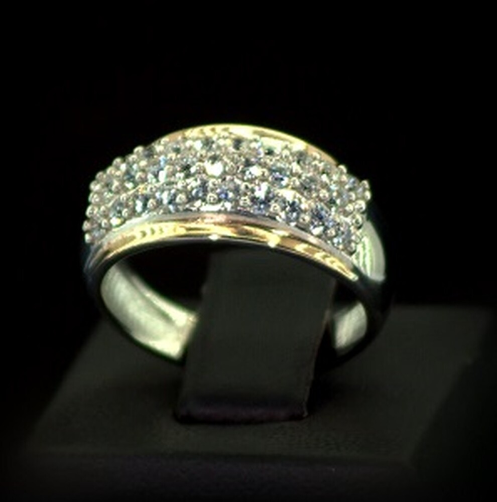 Серебряное кольцо 925 пробы с позолотой 375 пробы 4,11 г с белыми Фианитами 1,75 карат