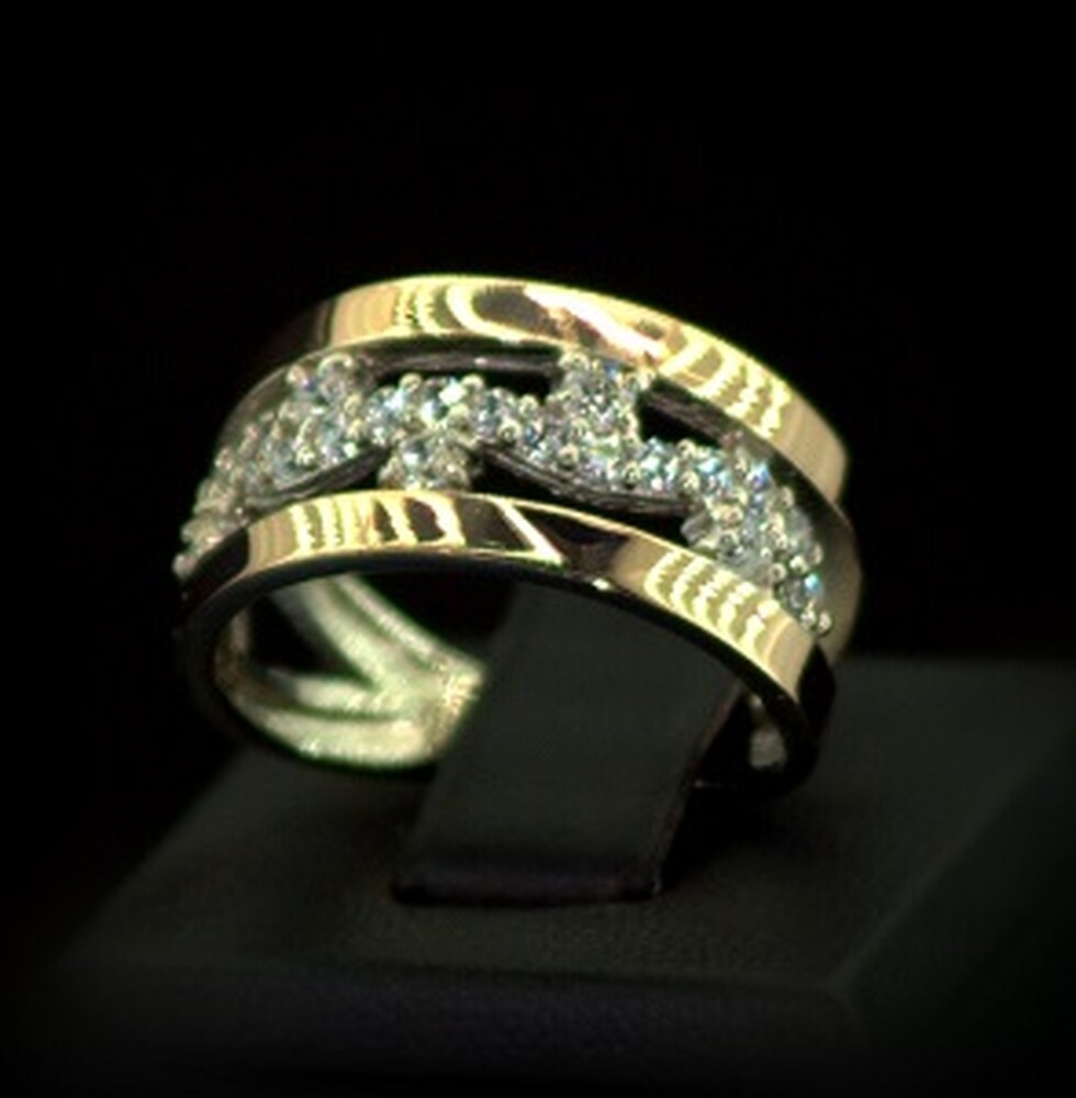 Серебряное кольцо 925 пробы с позолотой 375 пробы 4,47 г с белыми Фианитами 1,25 карат