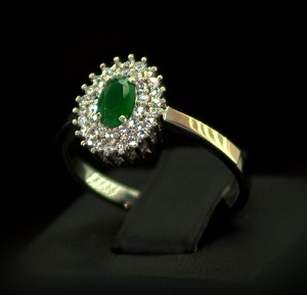 Серебряное кольцо 925 пробы с позолотой 375 пробы 2,6 г с зеленым та белыми Фианитами 2,55 карат