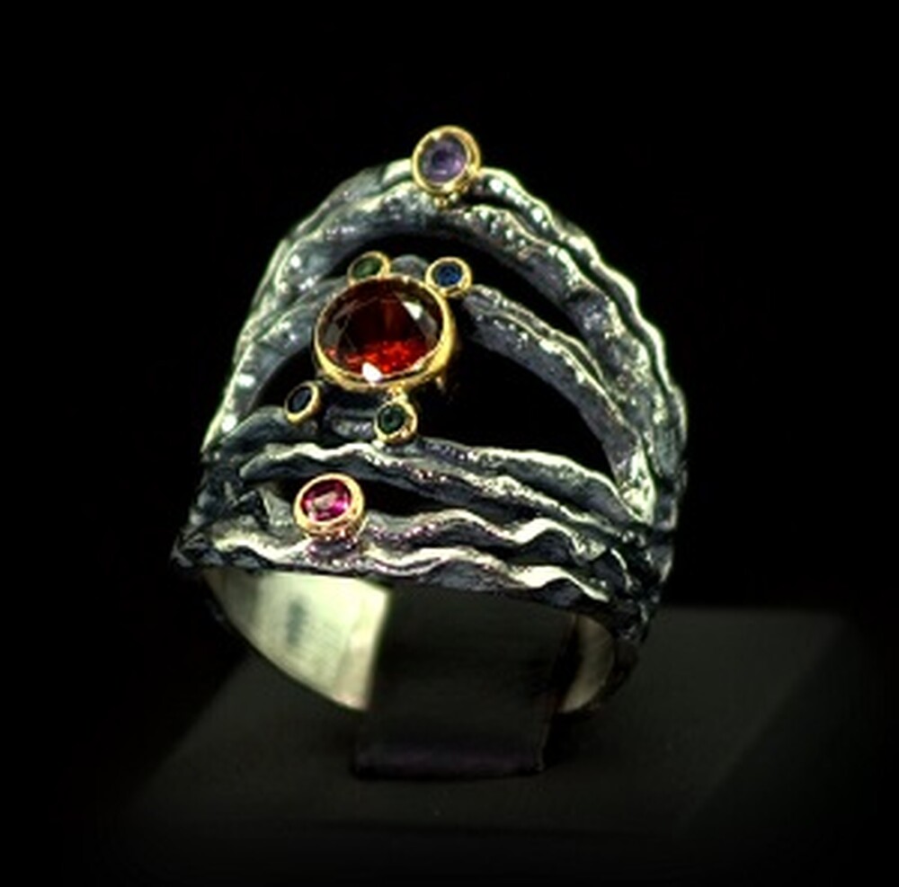 Серебряное кольцо ручної роботи 925 пробы 9,29 г с кольоровими цирконами 1,39 карат