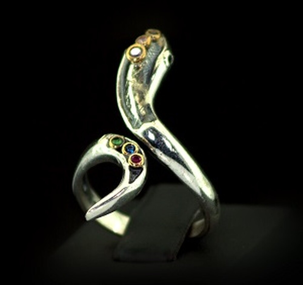 Серебряное кольцо ручної роботи 925 пробы 6,75 г с кольоровими цирконами 0,15 карат