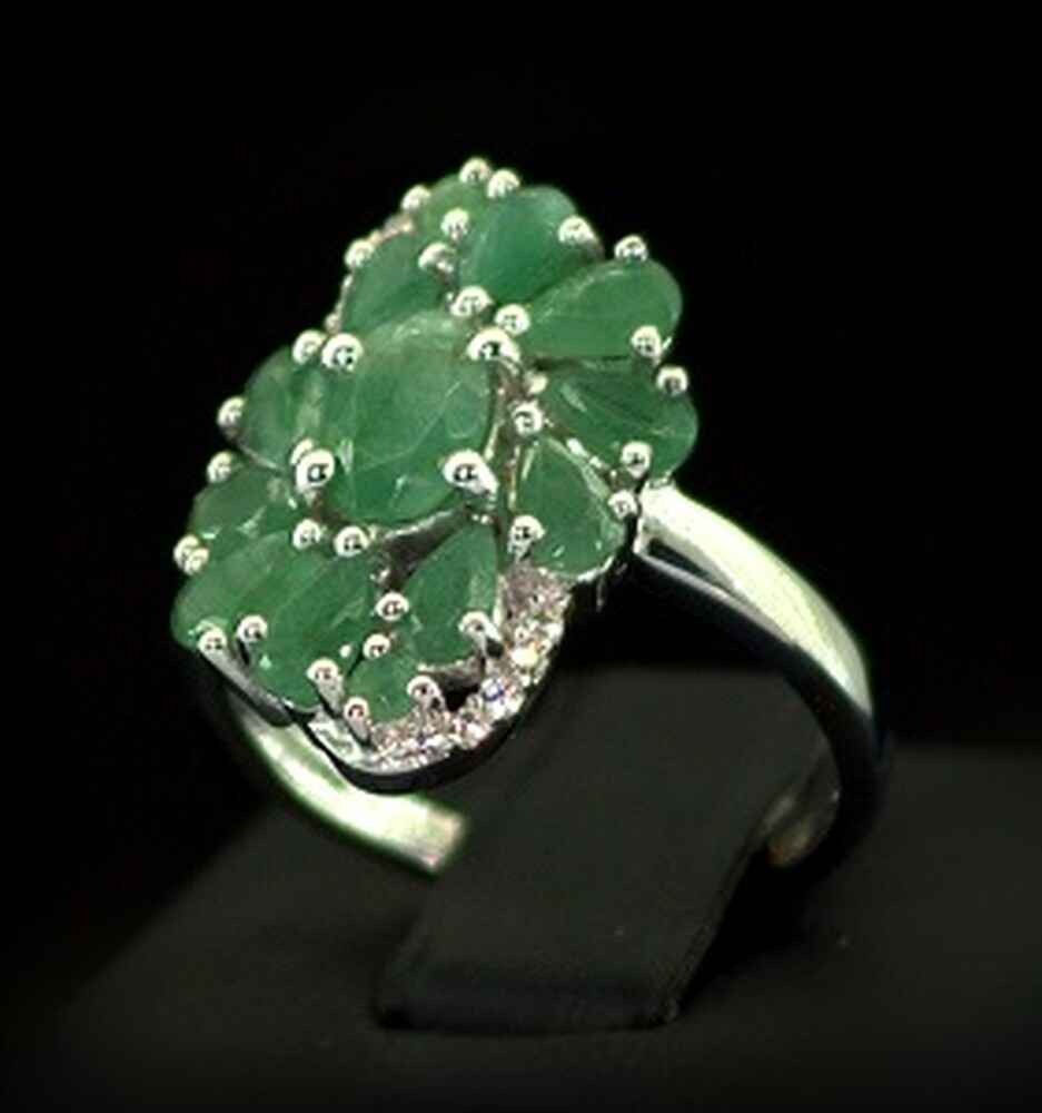 Серебряное кольцо 925 пробы 4,34 г с бразильскими Изумрудами класса АААА и цирконами 3,05 карат