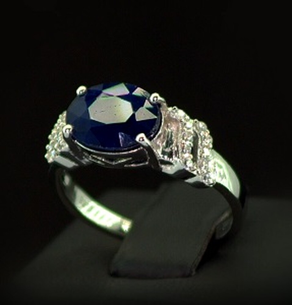 Серебряное кольцо 925 пробы 3,38 г с голубым шри-ланкийским Сапфіром класса АААА и цирконами 3,55 карат