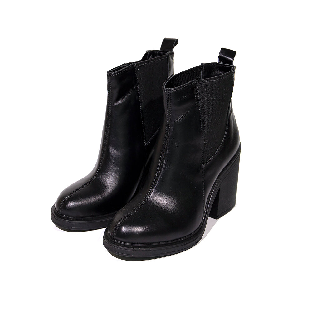 Ботинки женские, черного цвета из натуральной кожи на каблуке (9 см)