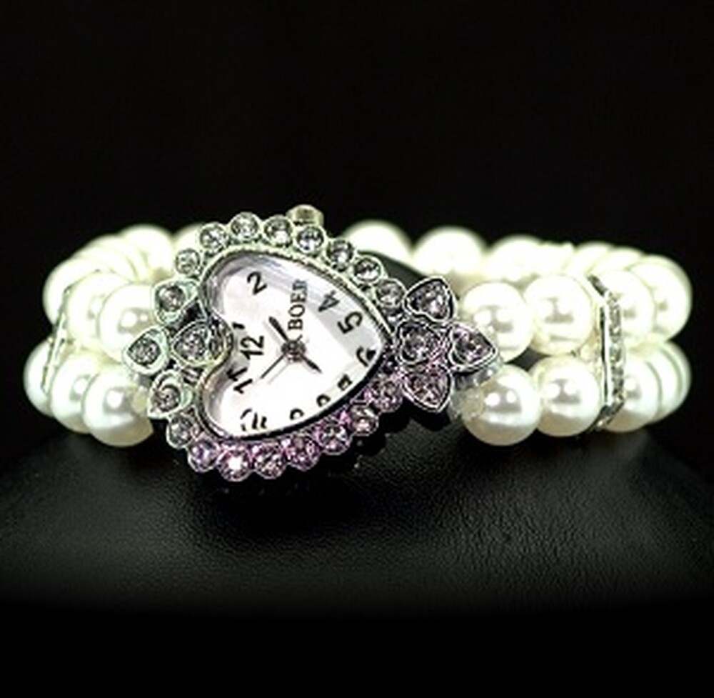 Кварцевий женский часы с Перлинами (імітація) и фианитами