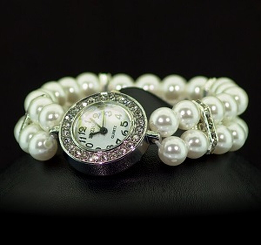 Кварцевий женский часы с Перлинами (імітація) и фианитами
