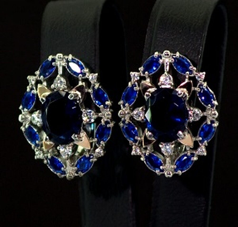 131830_uaСрібні сережки 925 проби з позолотою 375 проби 6,65 г з синіми та білими Фіанітами 10,55 карат 131830_ua 5252₴ 2626₴1 BTQ Проба Срібло 925Срібло