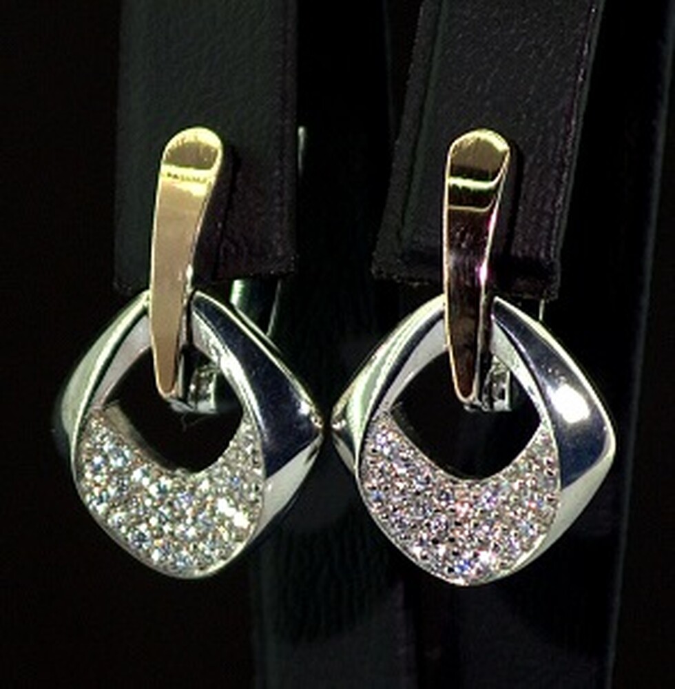 131838_uaСрібні сережки 925 проби з позолотою 375 проби 6,77 г з білими Фіанітами 0,95 карат 131838_ua 6150₴ 3075₴ BTQ Проба Срібло 925Срібло