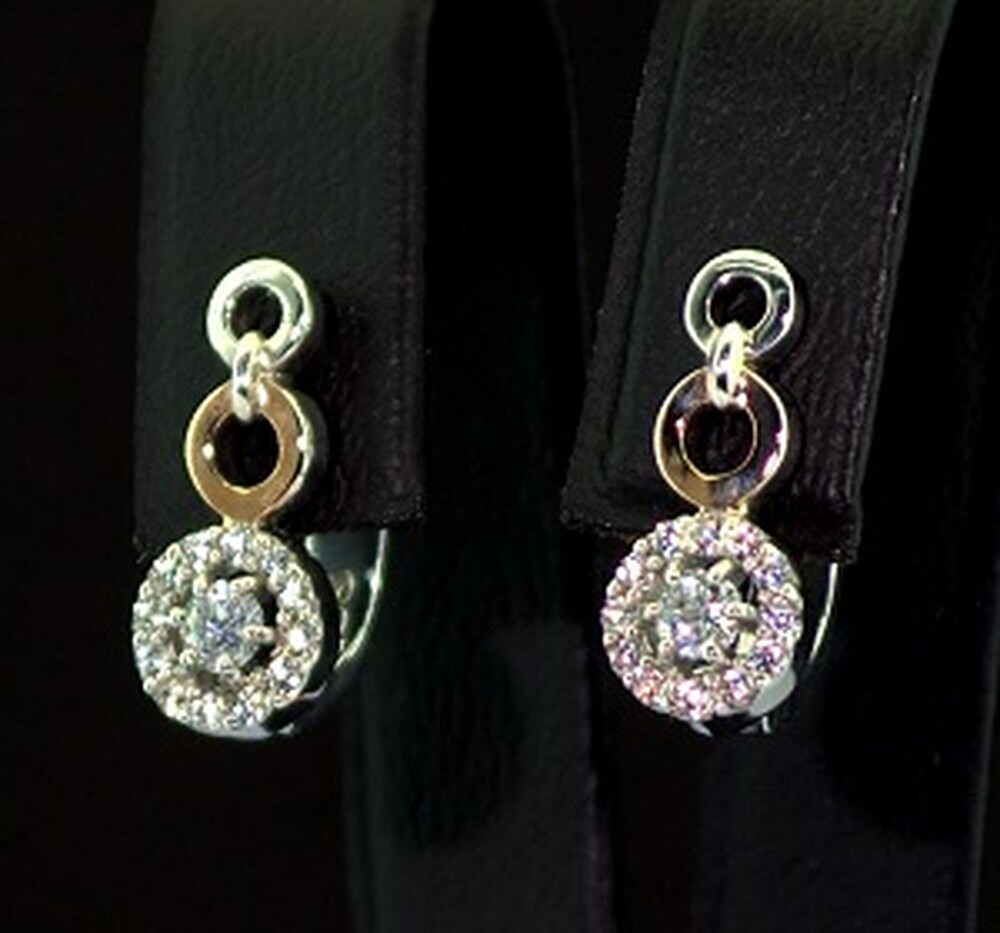 Срібні сережки 925 проби з позолотою 375 проби 3,23 г з білими Фіанітами 0,8 карат