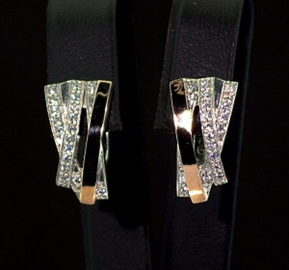 Срібні сережки 925 проби з позолотою 375 проби 4,36 г з білими Фіанітами 0,65 карат