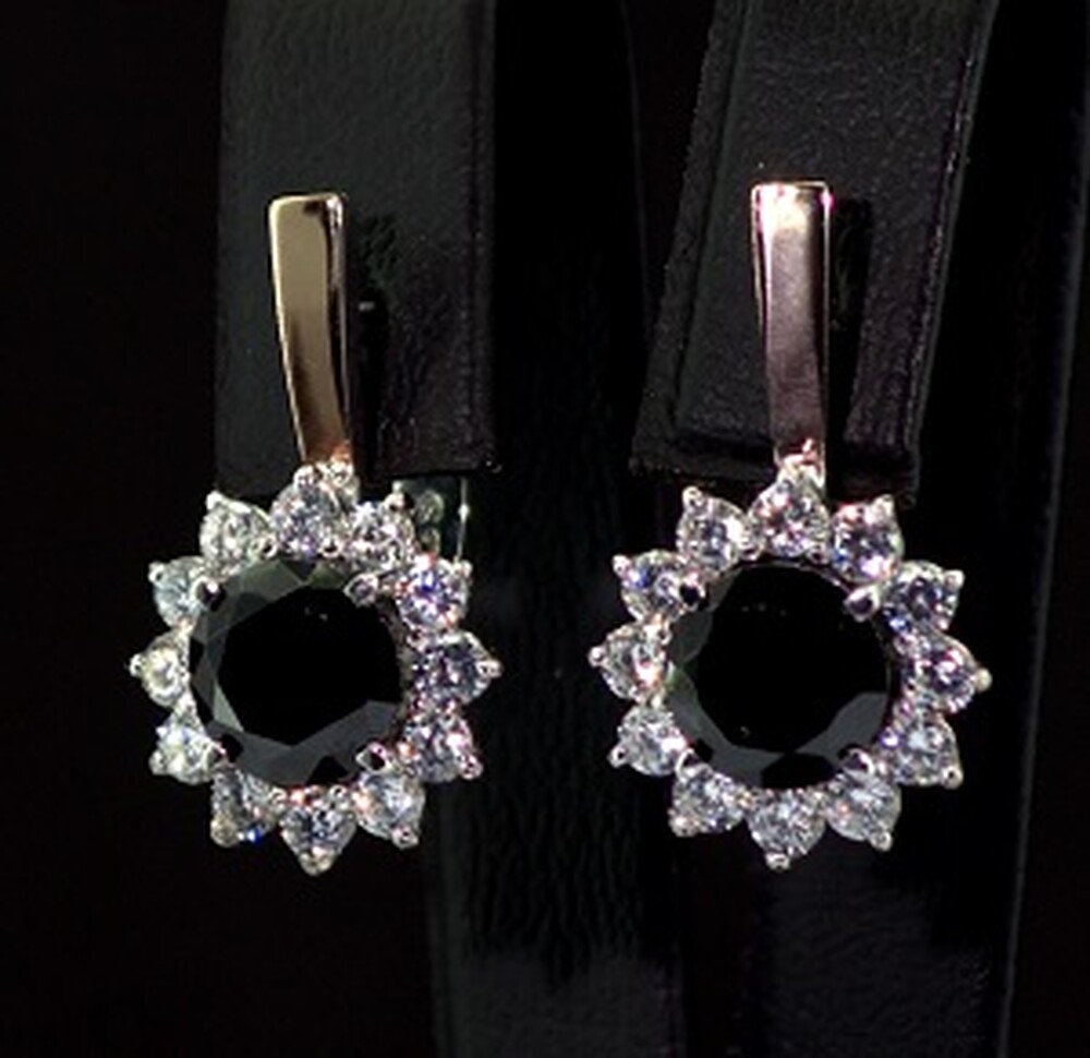 Срібні сережки 925 проби з позолотою 375 проби 8,8 г з чорними та білими Фіанітами 10 карат
