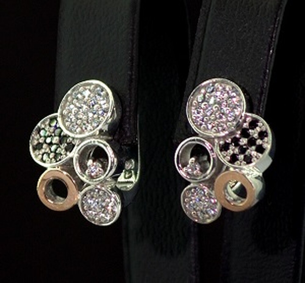 131901_uaСрібні сережки 925 проби з позолотою 375 проби 5,53 г з чорними та білими Фіанітами 1,2 карат 131901_ua 5712₴ 2856₴ BTQ Проба Срібло 925Срібло