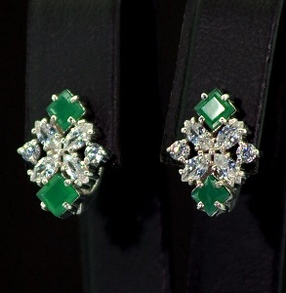 Срібні сережкки 925 проби 3,74 г з зеленими Агатами та фіанітами 1,65 карат