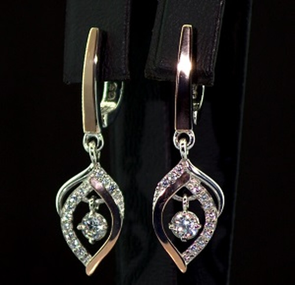 Срібні сережки 925 проби з позолотою 375 проби 4,52 г з білими Фіанітами 0,85 карат