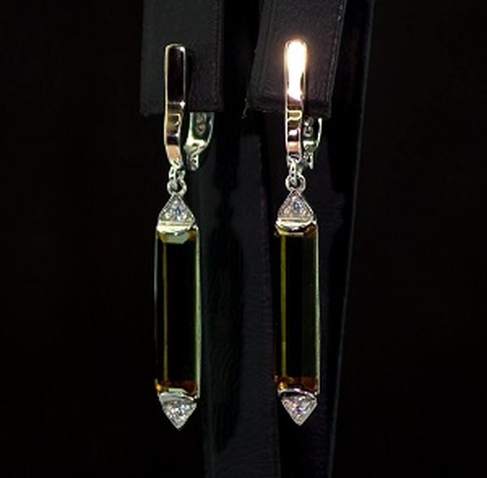 Срібні сережки 925 проби з позолотою 375 проби 5,62 г з коричневими та білими Фіанітами 7,65 карат
