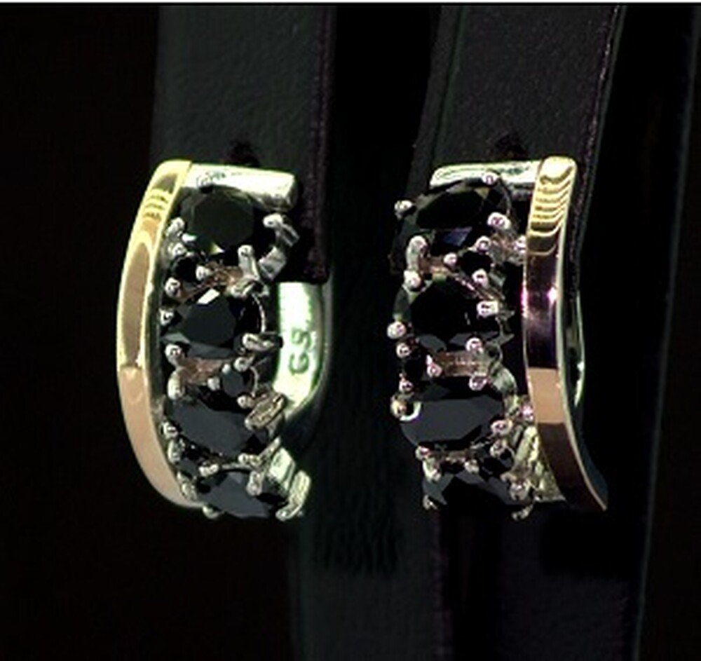 Срібні сережки 925 проби з позолотою 375 проби 7,64 г з чорними Фіанітами 6,8 карат