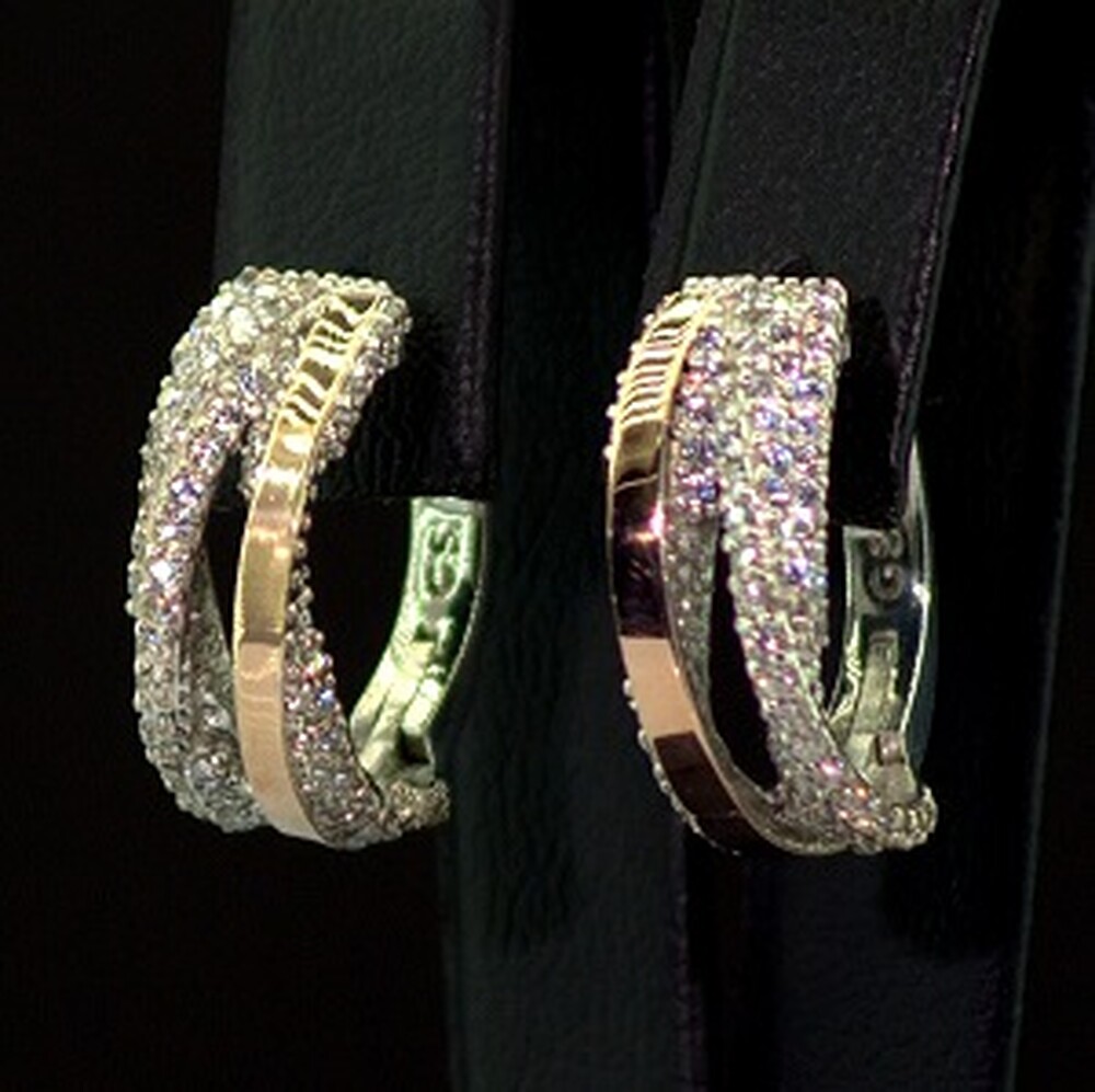 Срібні сережки 925 проби з позолотою 375 проби 7,35 г з білими Фіанітами 2,25 карат