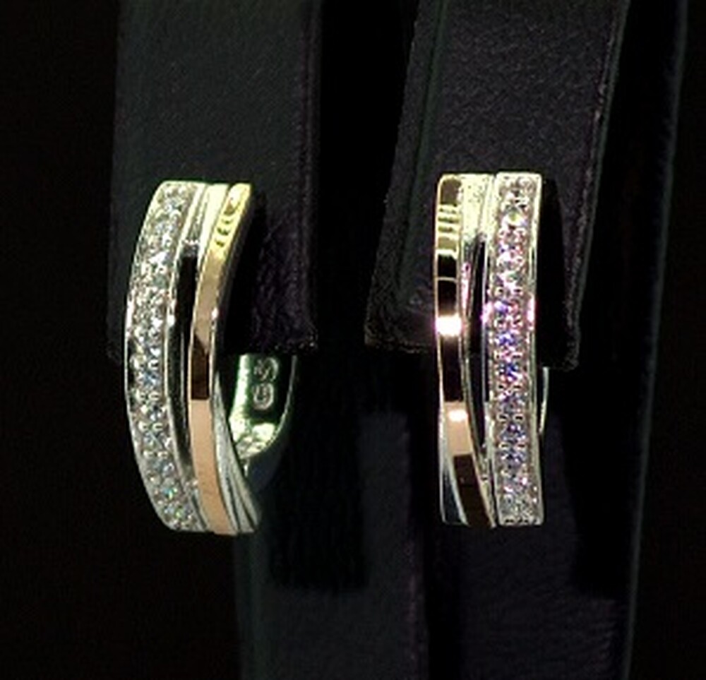 Срібні сережки 925 проби з позолотою 375 проби 3,16 г з білими Фіанітами 0,45 карат