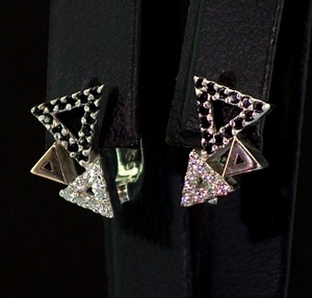 Срібні сережки 925 проби з позолотою 375 проби 4,24 г з чорними та білими Фіанітами 0,85 карат