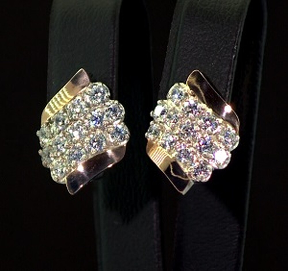 Срібні сережки 925 проби з позолотою 375 проби 5,84 г з білими Фіанітами 3,3 карат