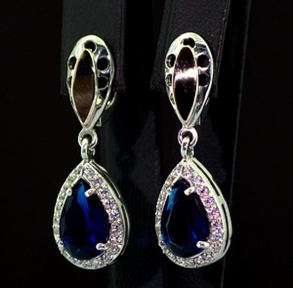 Срібні сережки 925 проби з позолотою 375 проби 7,39 г з синім та білими Фіанітами 10,6 карат