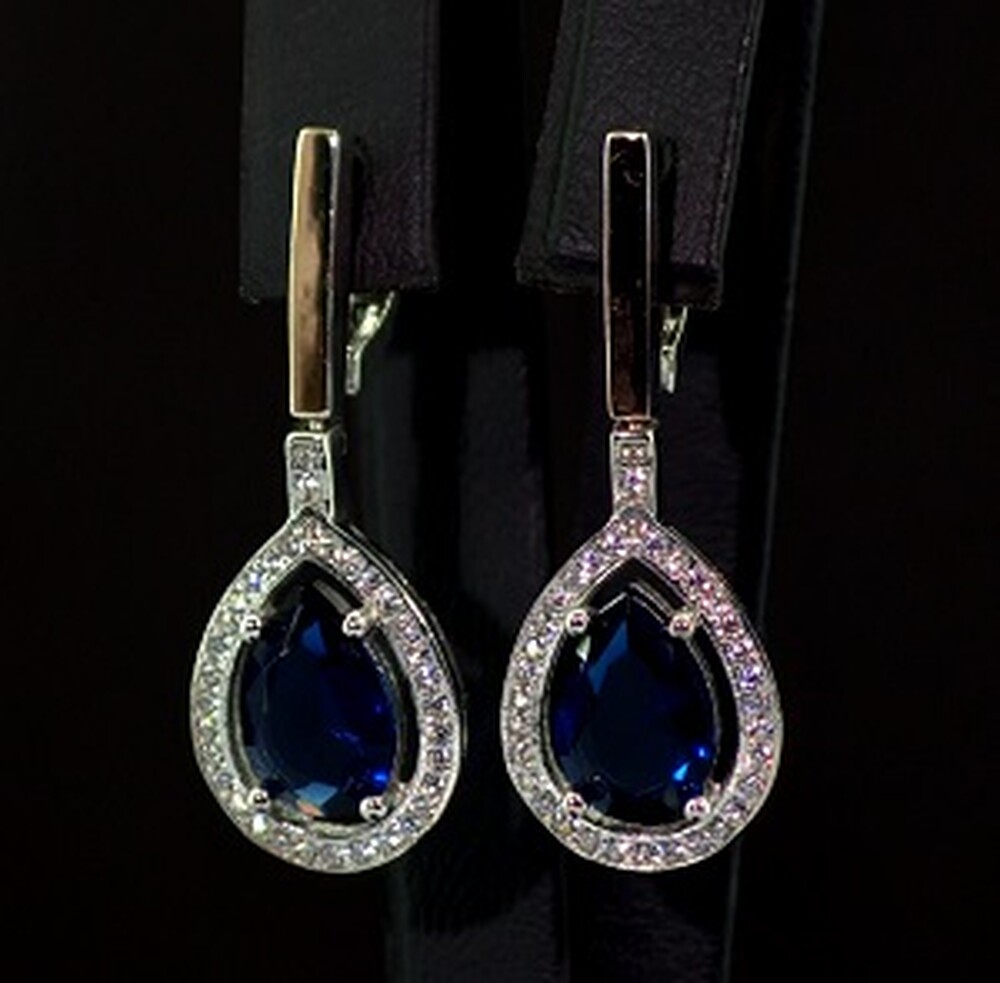 Срібні сережки 925 проби з позолотою 375 проби 8,06 г з синіми та білими Фіанітами 10,75 карат