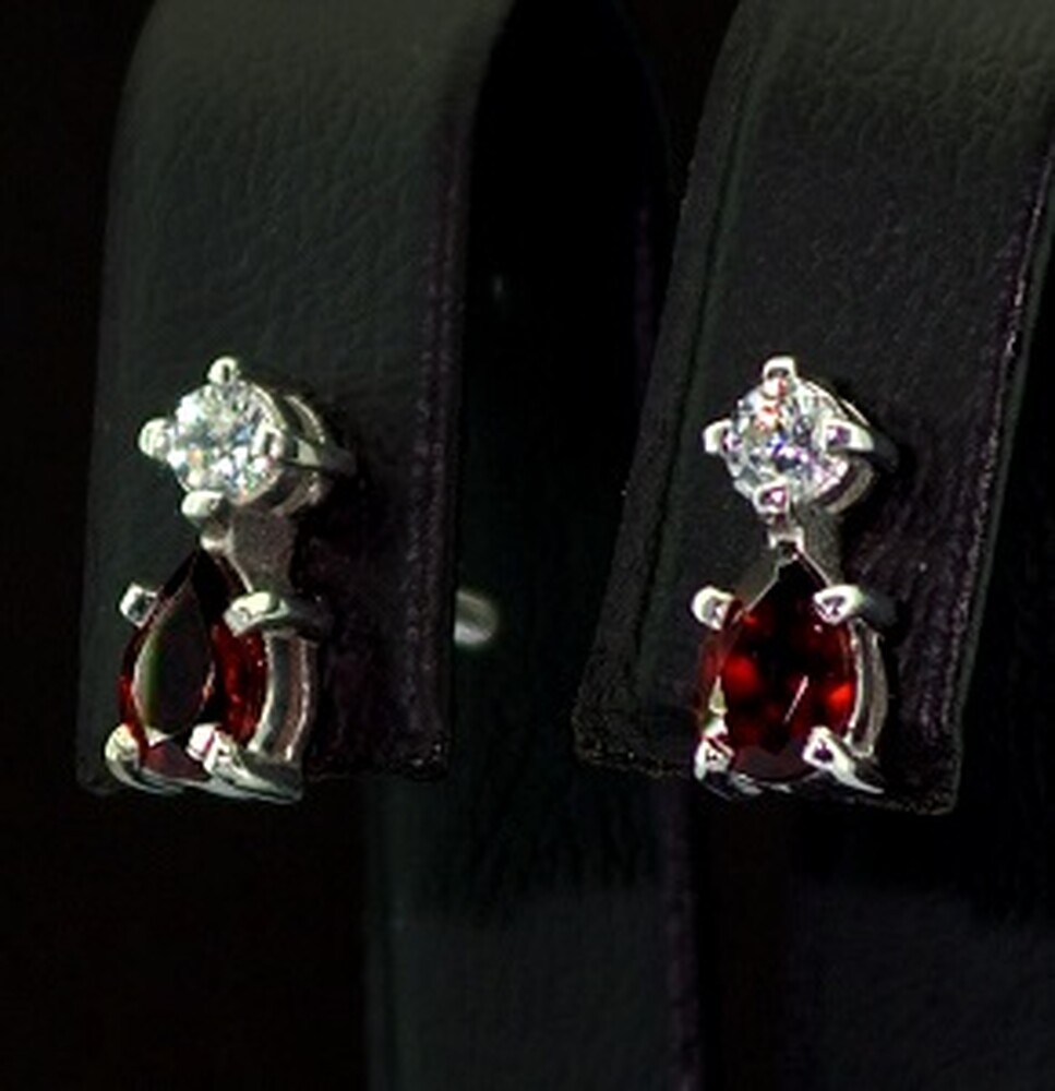 Срібні сережки 925 проби 2,63 г з чеськими Гранатами та фіанітами 1,42 карат