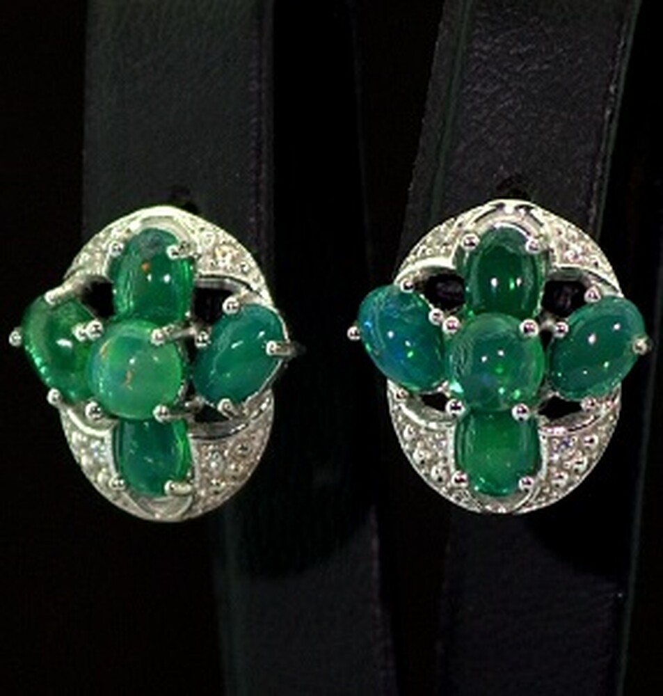 Срібні сережки 925 проби 3,7 г з зеленими ефіопськими Опалами класу АААА та цирконами 2,89 карат