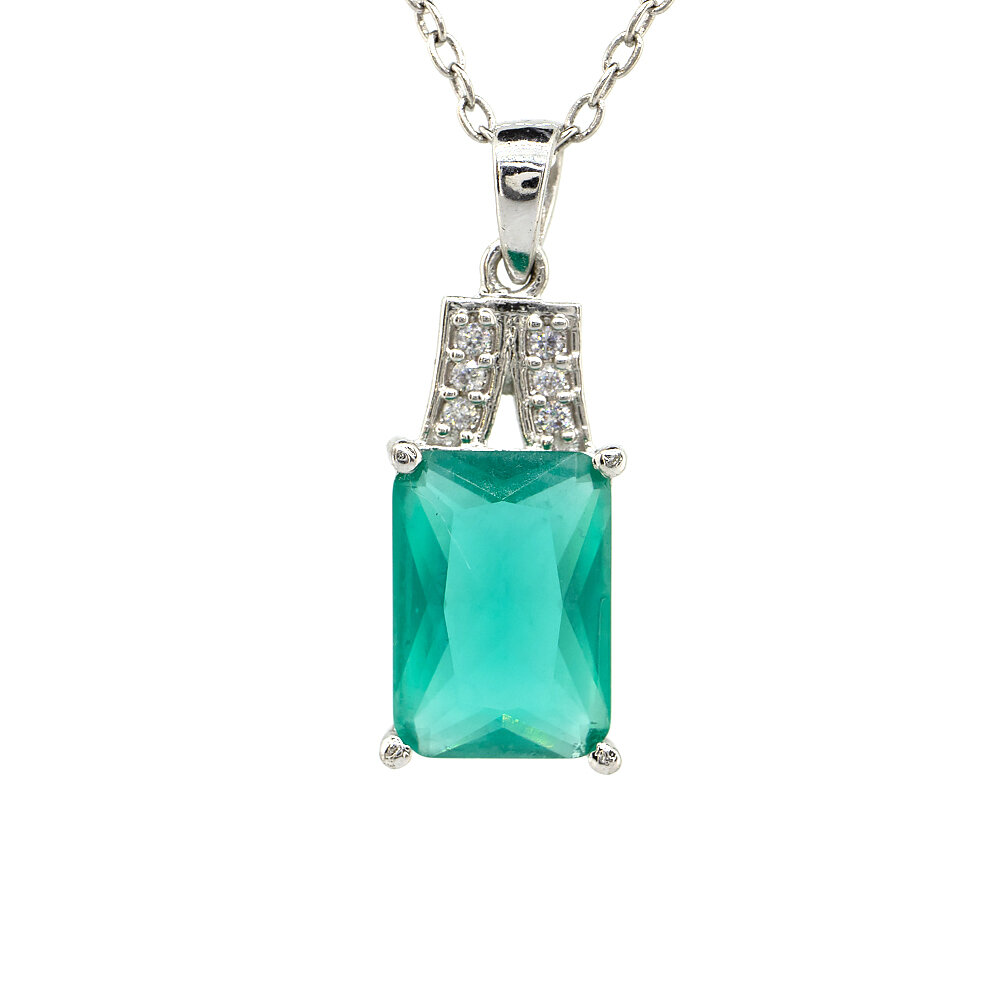 Підвіска з платиновим покриттям 850 проби з зеленим та білими кристалами 6,12 карат