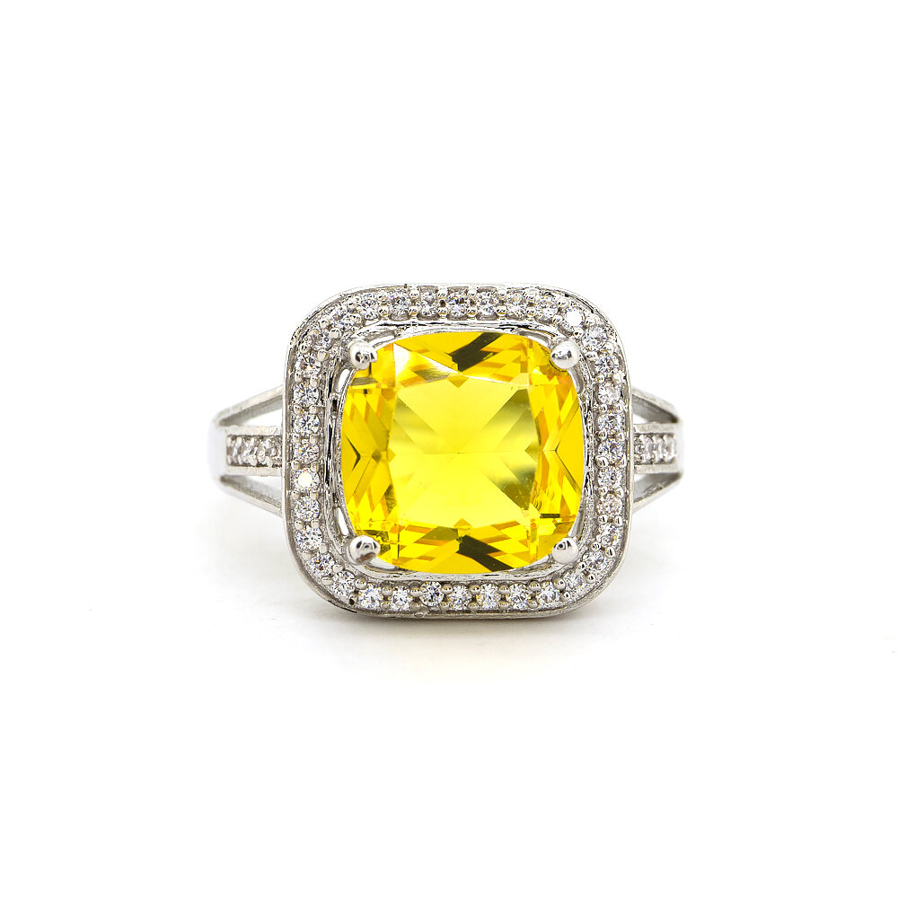 Каблучка з платиновим покриттям 850 проби з жовтим та білими кристалами 6,17 карат