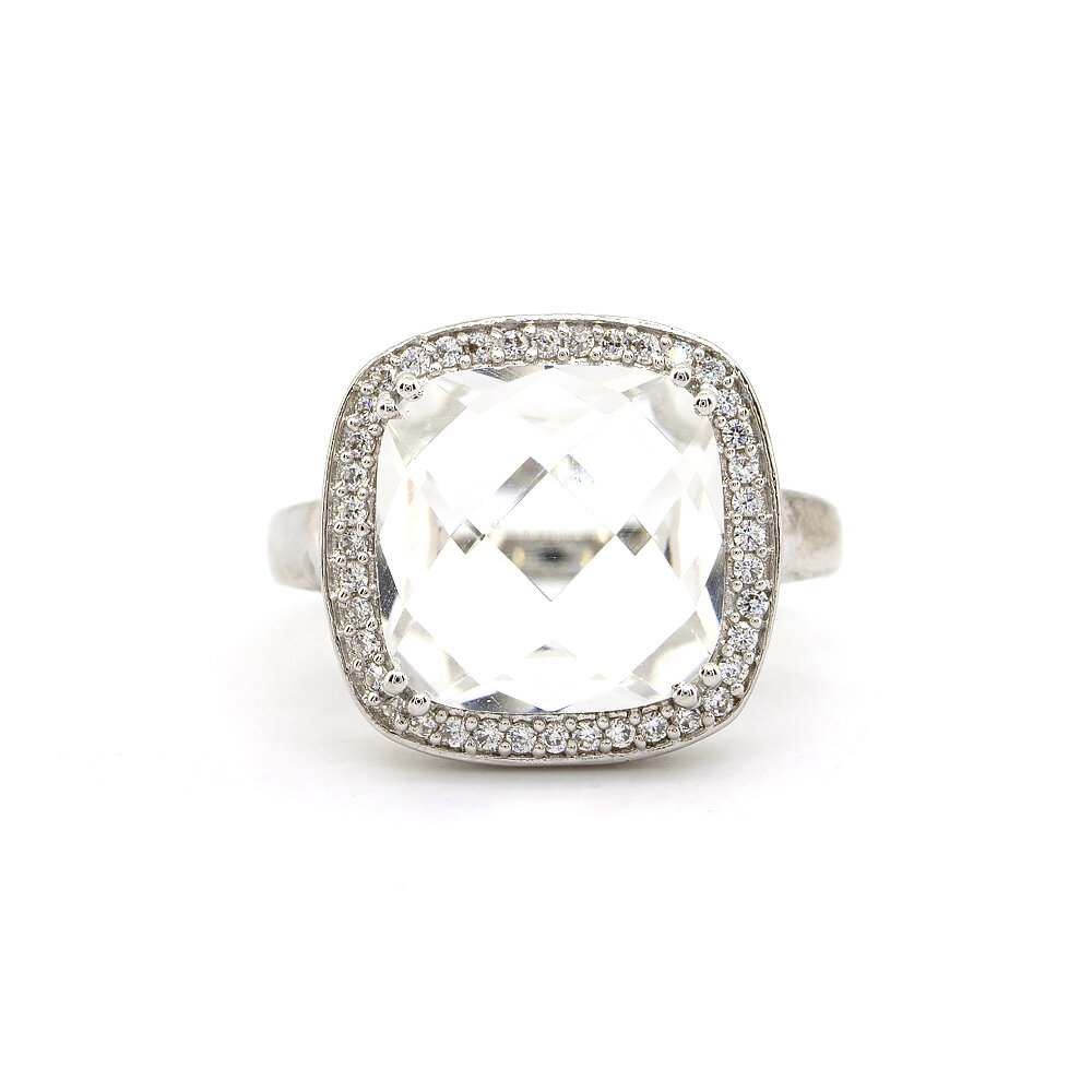 Каблучка з платиновим покриттям 850 проби з білими кристалами 9,97 карат