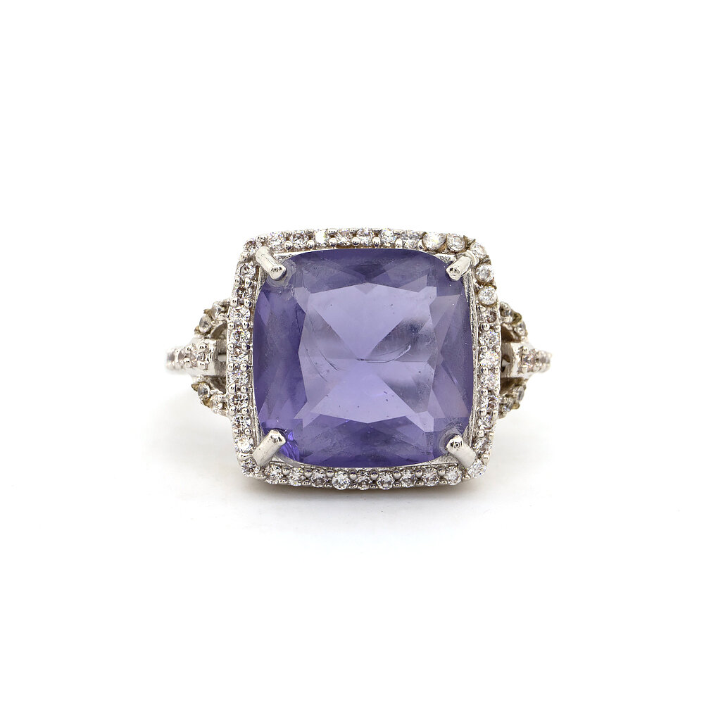 Каблучка з платиновим покриттям 850 проби з пурпуровим кристалом 9,28 карат