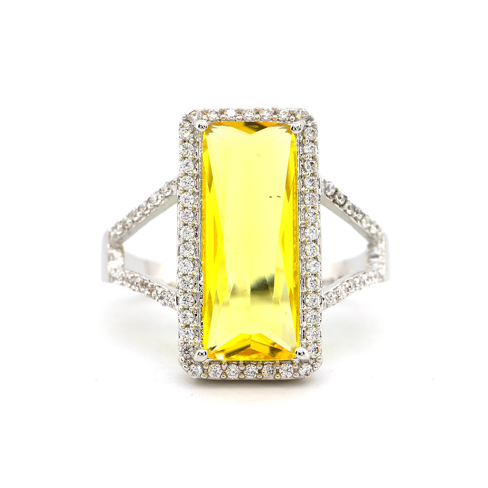 Каблучка з платиновим покриттям 850 проби з жовтим та білими кристалами 6,46 карат