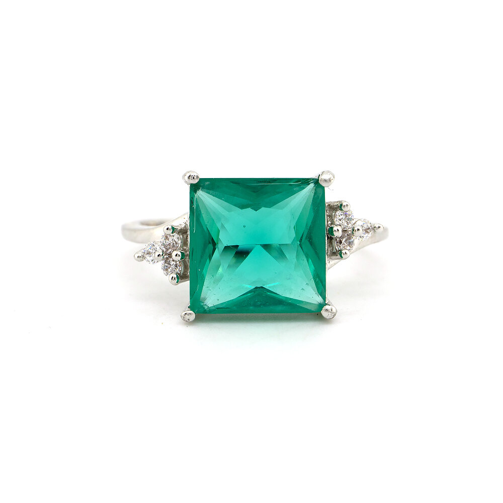 Каблучка з платиновим покриттям 850 проби з зеленим та білими кристалами 6,42 карат
