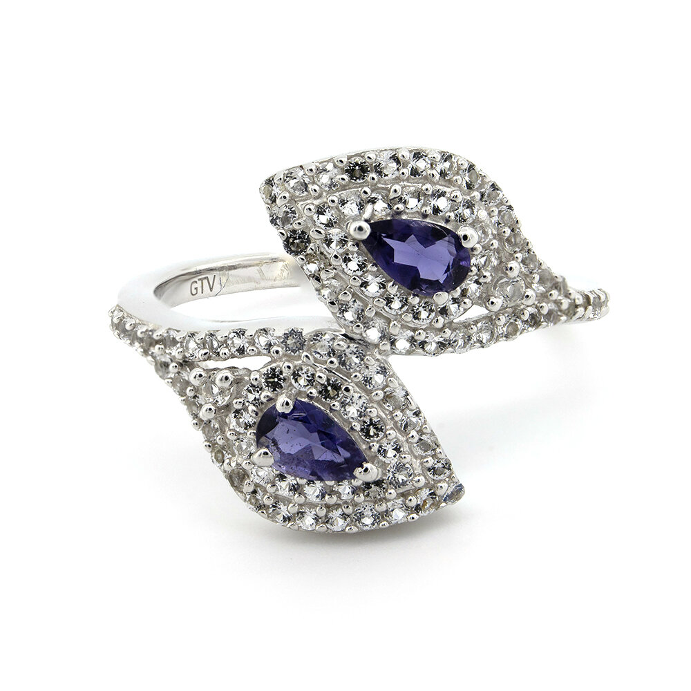 Срібна каблучка 925пр 3,24г з танзанійськими іолітами та білими топазами з США 0,97к