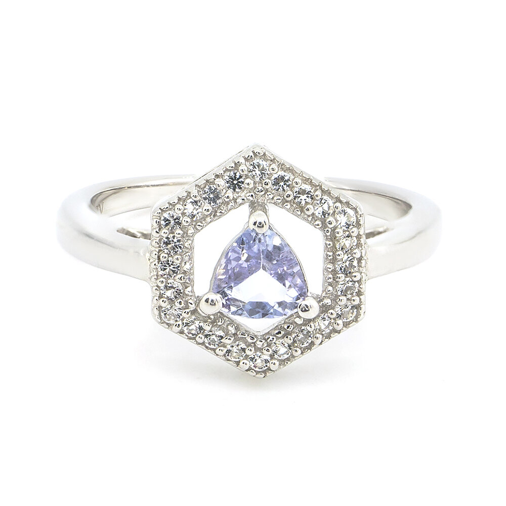 Срібна каблучка 925 проби 2,9 г з танзанітом класу АААА та білими топазами з США 0,6 карат