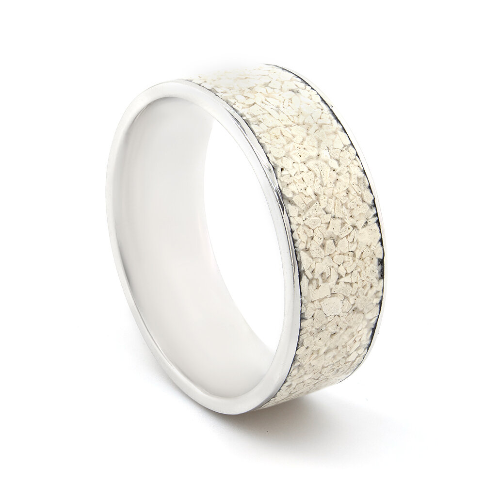 Каблучка в білій позолоті 750 проби з ювелірною емаллю