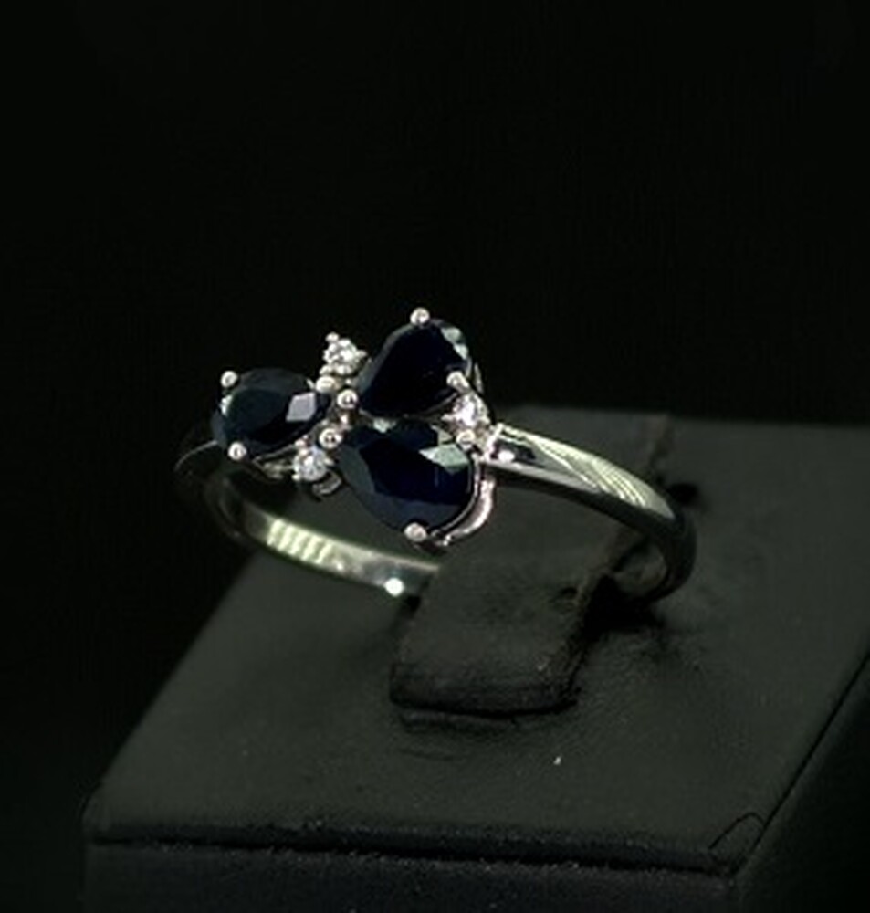 Срібна каблучка 925 проби 2,82 г зі шрі-ланкійськими Сапфірами класу АААА та цирконами 0,85 карат