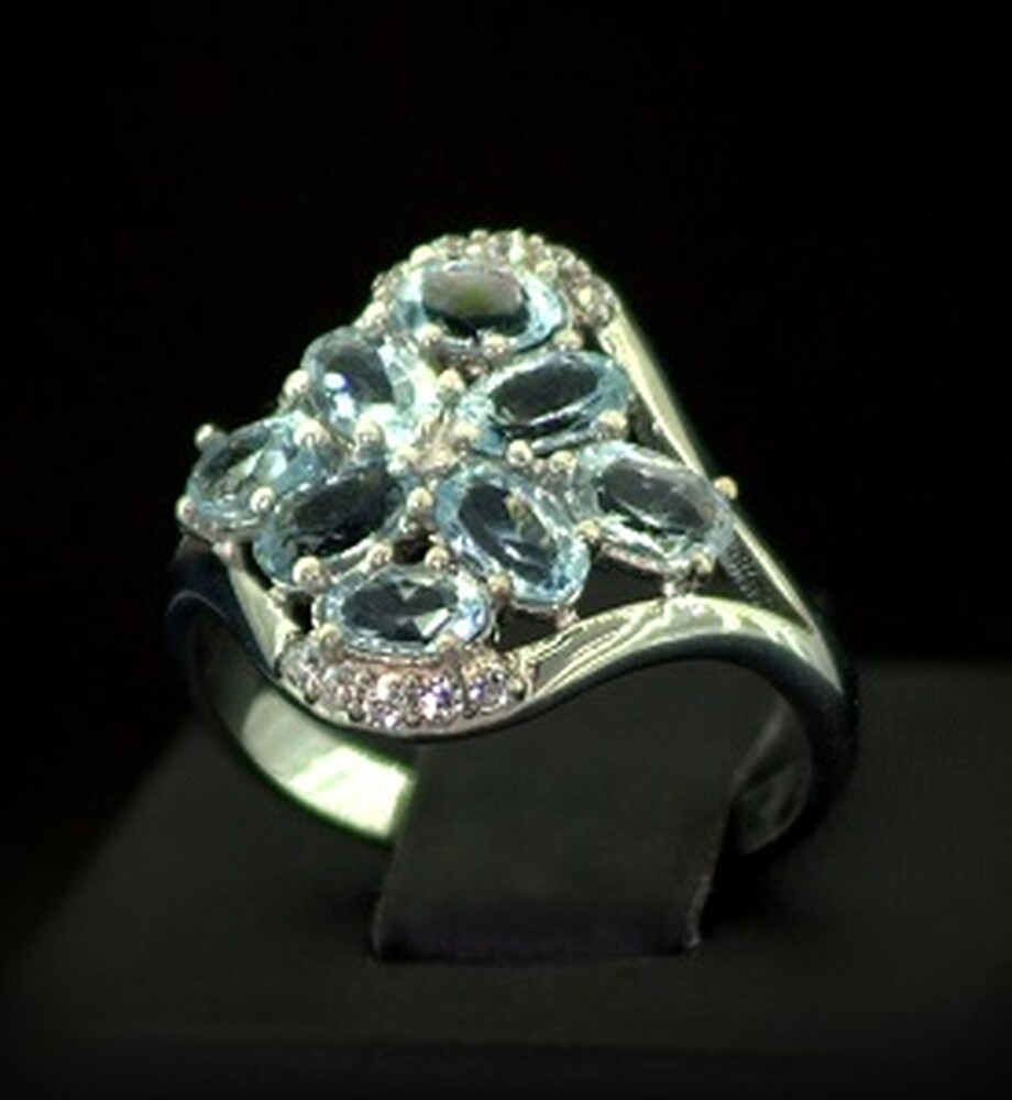Срібна каблучка 925 проби 2,89 г з блакитними Топазами та фіанітами 2,36 карат