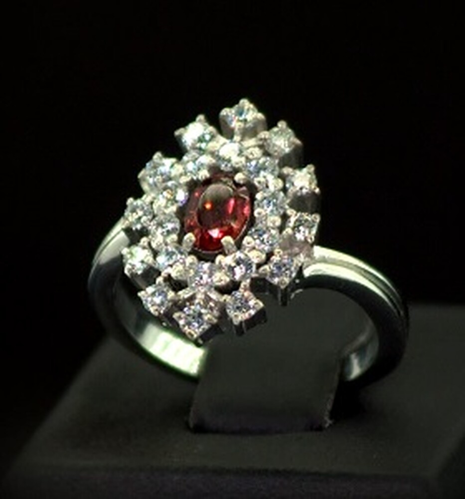 Срібна каблучка 925 проби 3,66 г з Гранатом та фіанітами 1,92 карат