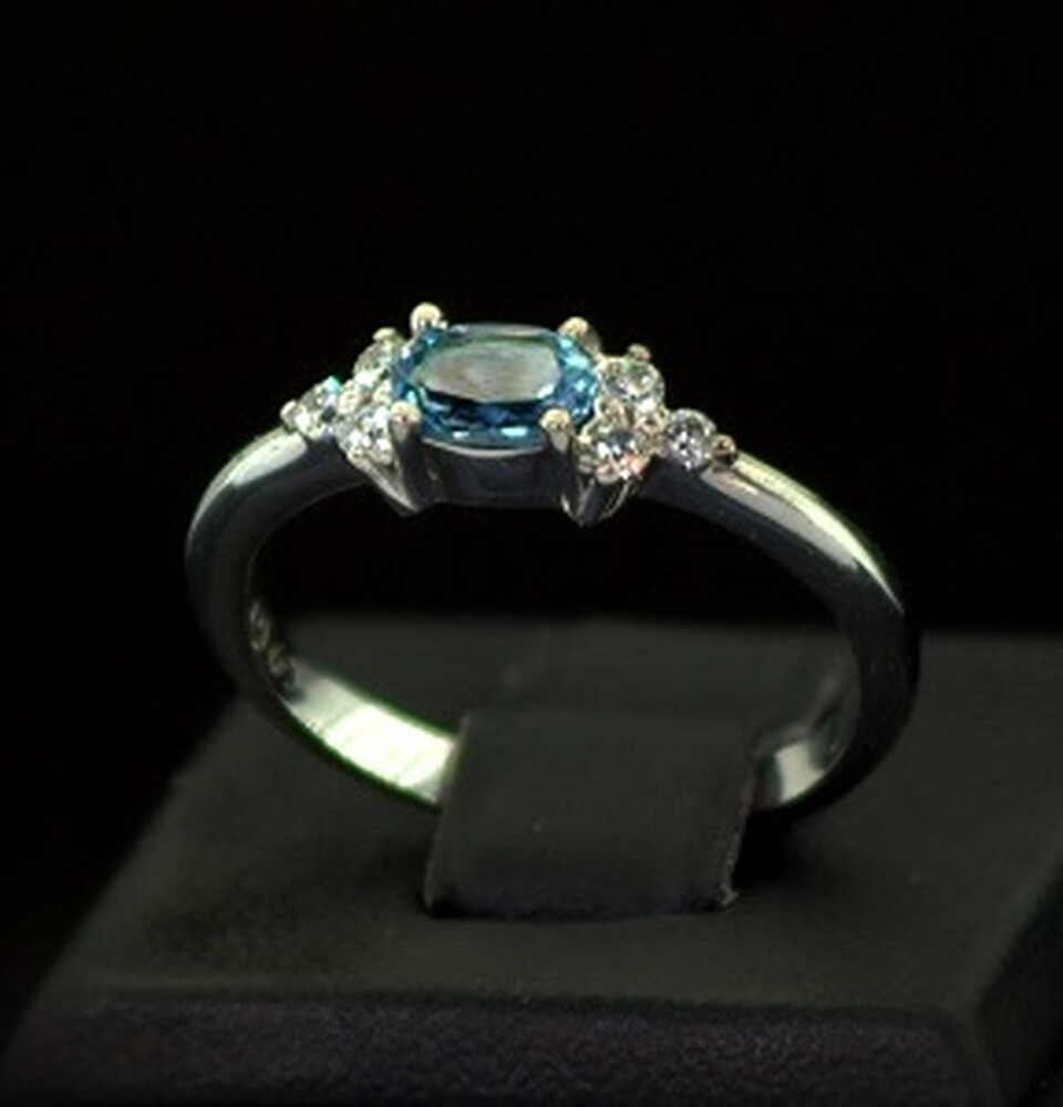 Срібна каблучка 925 проби 2,45 г з Лондон Блу Топазом та фіанітами 0,75 карат