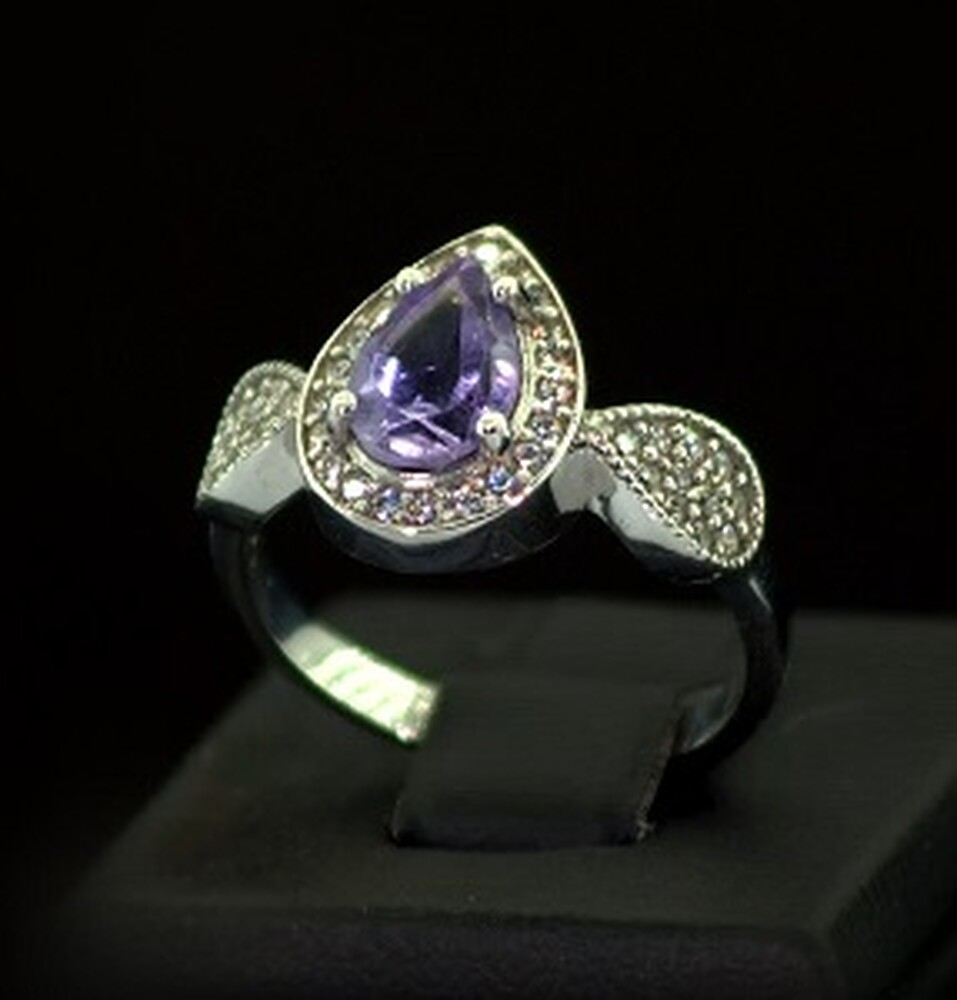 Срібна каблучка 925 проби 3,86 г з бразильським Аметистом та фіанітами 1,86 карат