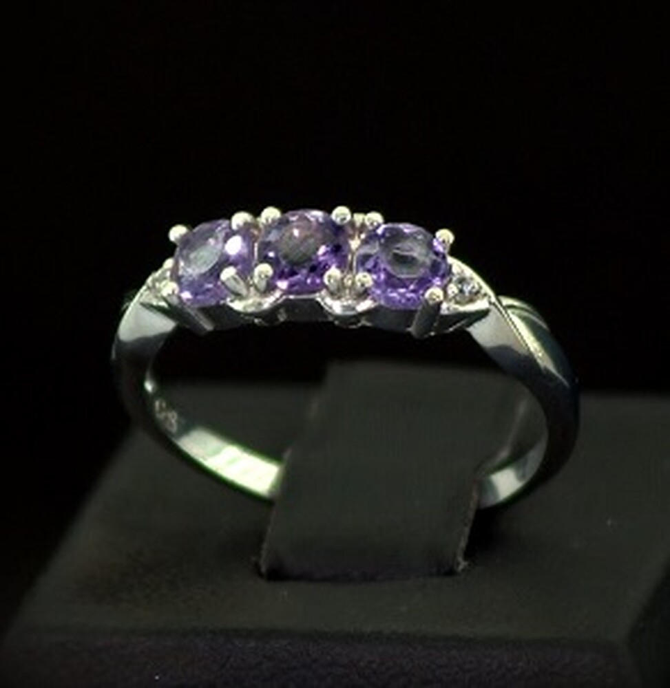 Срібна каблучка 925 проби 2,02 г з бразильськими Аметистами та фіанітами 0,86 карат