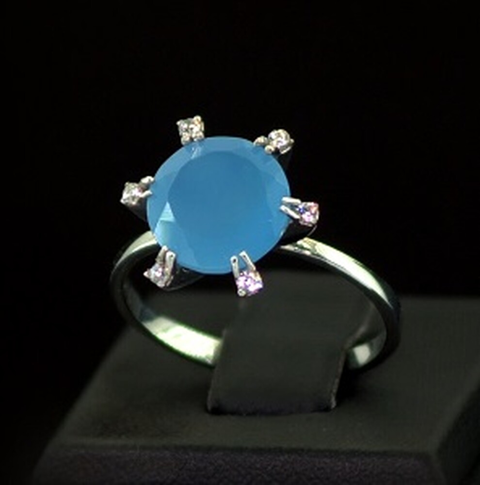Срібна каблучка 925 проби 2,98 г з блакитним Кварцем та фіанітами 3,88 карат