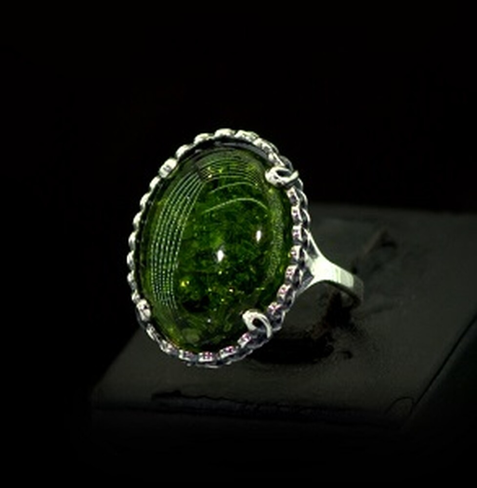 Срібна каблучка 925 проби 5,39 г з зеленим Бурштином 7 карат