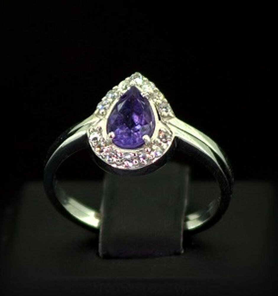 Срібна каблучка 925 проби 2,83 г з бразильським Аметистом та фіанітами 1,2 карат