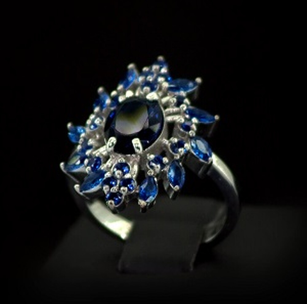 Срібна каблучка 925 проби 5,69 г з синіми фіанітами 3,97 карат